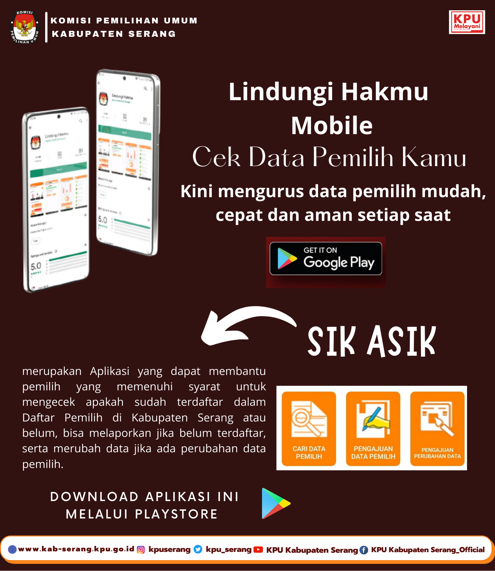 Aplikasi Lindungi Hakmu Mobile dan Sikasik, Aplikasi Milik KPU Yang Memudahkan Masyarakat Untuk Mengecek Hak Pilih. Kedua aplikasi ini bisa diunduh mellaui google play dan play store