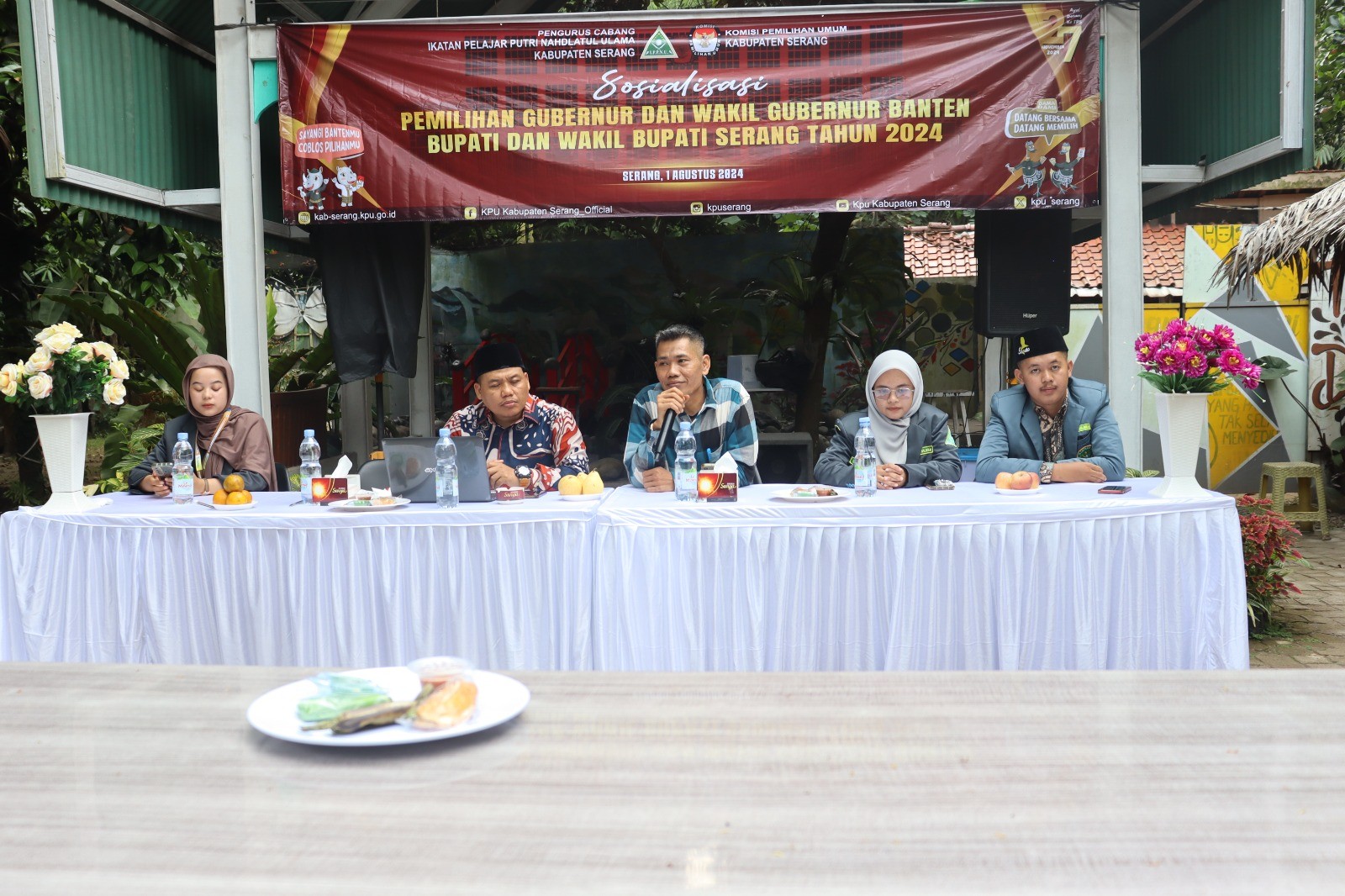 kab-serang.kpu.go.id - KPU Kabupaten Serang bersama Pimpinan Cabang IPPNU Kabupaten Serang menggelar Sosialisasi dan Pendidikan pemilih pada Pemilihan Gubernur dan Wakil Gubernur Banten, Bupati dan Wakil Bupati Serang Tahun 2024 di Hydro Café Petir pada Kamis (1 Agustus 2024)