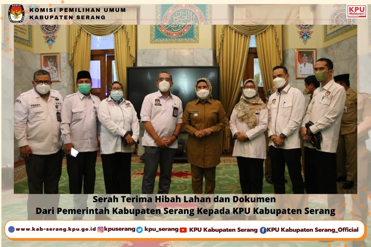 Serang (6/12) - Bertempat di Kantor Bupati Serang, KPU Kabupaten Serang menghadiri serah terima hibah lahan dan dokumen dari Pemerintah Kabupaten Serang kepada KPU Kabupaten Serang dan Kementerian Agama Serang pada Senin (6/12). Pada acara ini Bapak Purwoto Ruslan Hidayat dari KPU RI turut memberikan sambutan dan rasa terima kasih atas hibah tanah guna membangun kantor KPU Kabupaten Serang yang juga akan menunjang persiapan Pemilu tahun 2024.