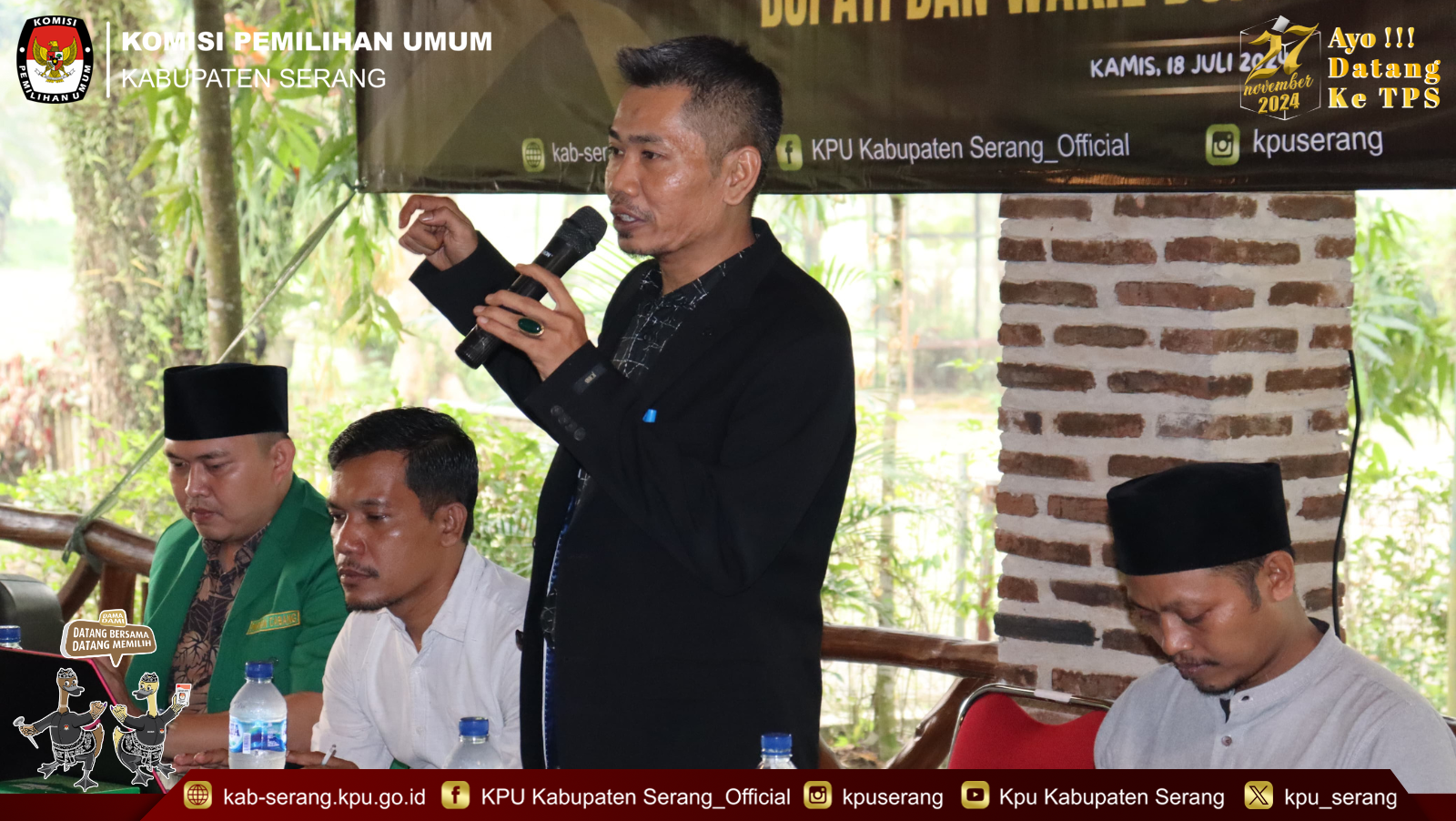 Anggota KPU Kabupaten Serang Ichsan Mahfuz membuka kegiatan sosialisasi dan Pendidikan pemilih pada Pemilihan Gubernur dan Wakil Gubernur Banten, Bupati dan Wakil Bupati Serang Tahun 2024 di Sari Kuring Indah Baros, Kamis (18 Juli 2024)