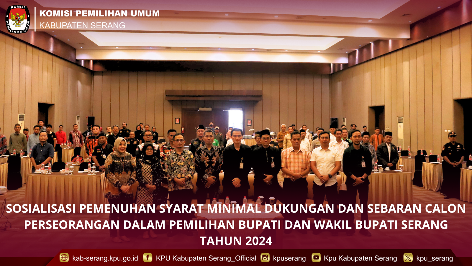 KPU KABUPATEN SERANG GELAR SOSIALISASI PEMENUHAN SYARAT MINIMAL DUKUNGAN DAN SEBARAN CALON PERSEORANGAN DALAM PEMILIHAN BUPATI DAN WAKIL BUPATI SERANG TAHUN 2024