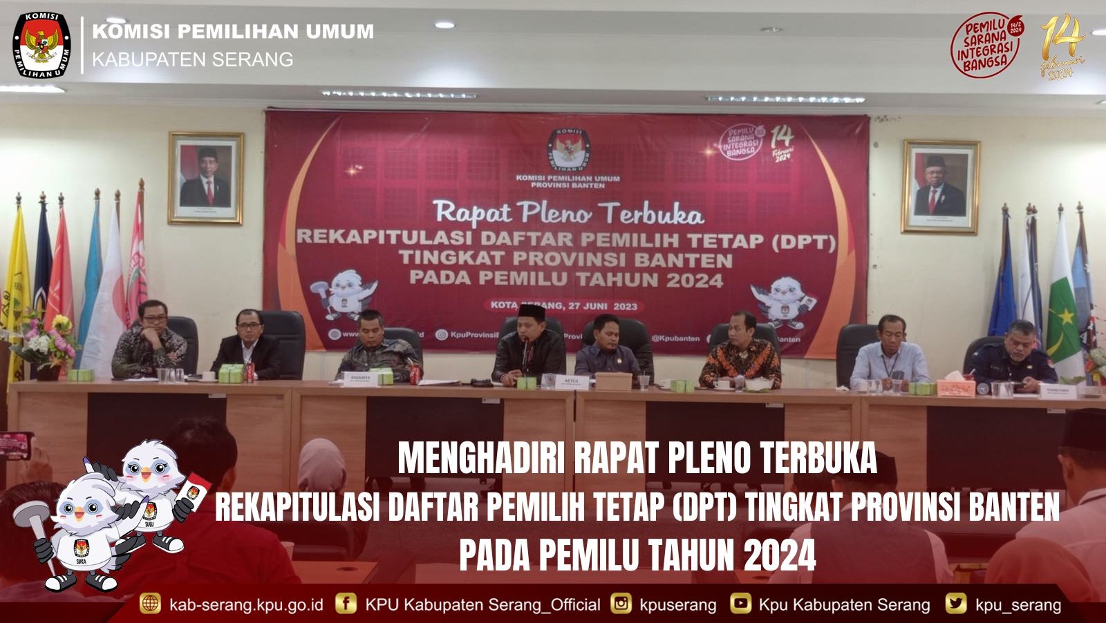 #TemanPemilih, Komisi Pemilihan Umum Kabupaten Serang menghadiri Rapat Pleno Terbuka Rekapitulasi Daftar Pemilih Tetap (DPT) Tingkat Provinsi Banten pada Pemilu Tahun 2024 bertempat di aula KPU Provinsi Banten, Selasa (27/06/2023)