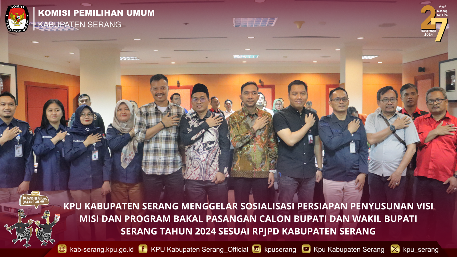 KPU KABUPATEN SERANG MENGGELAR SOSIALISASI PERSIAPAN PENYUSUNAN VISI MISI DAN PROGRAM BAKAL PASANGAN CALON BUPATI DAN WAKIL BUPATI SERANG TAHUN 2024 SESUAI RPJPD KABUPATEN SERANG