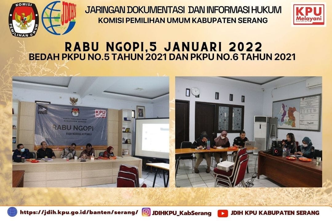 KPU Kab Serang kembali mengadakan Rabu Ngopi ( Rabu Ngobrolin Pemilu) edisi Perdana tahun 2022. Acara diikuti oleh seluruh Komisioner KPU Kab Serang beserta Plt.Sekretaris, Kasubbag dan Pelaksana di Sekretariat KPU Kab Serang.