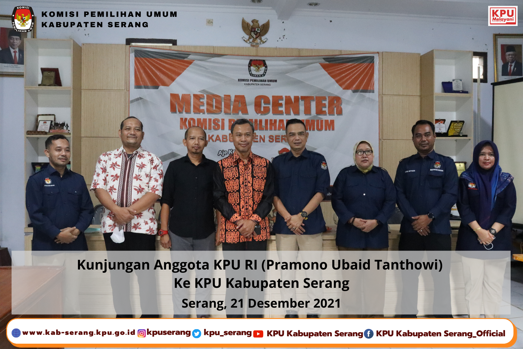 Serang (21/12) - Anggota KPU Republik Indonesia, Bapak Pramono Ubaid Tanthowi melakukan kunjungan ke KPU Kabupaten Serang pada Selasa (21/12). Kunjungan ini pun didampingi oleh Anggota KPU Provinsi Banten, Bapak Eka Satia Laksmana. Kunjungan ini sebagai penguatan kelembagaan dalam persiapan menuju Pemilu dan Pemilihan Tahun 2024. Kunjungan ini diterima oleh Ketua KPU Kabupaten Serang beserta jajaran komisioner, Plt.Sekretaris dan Kasubag.