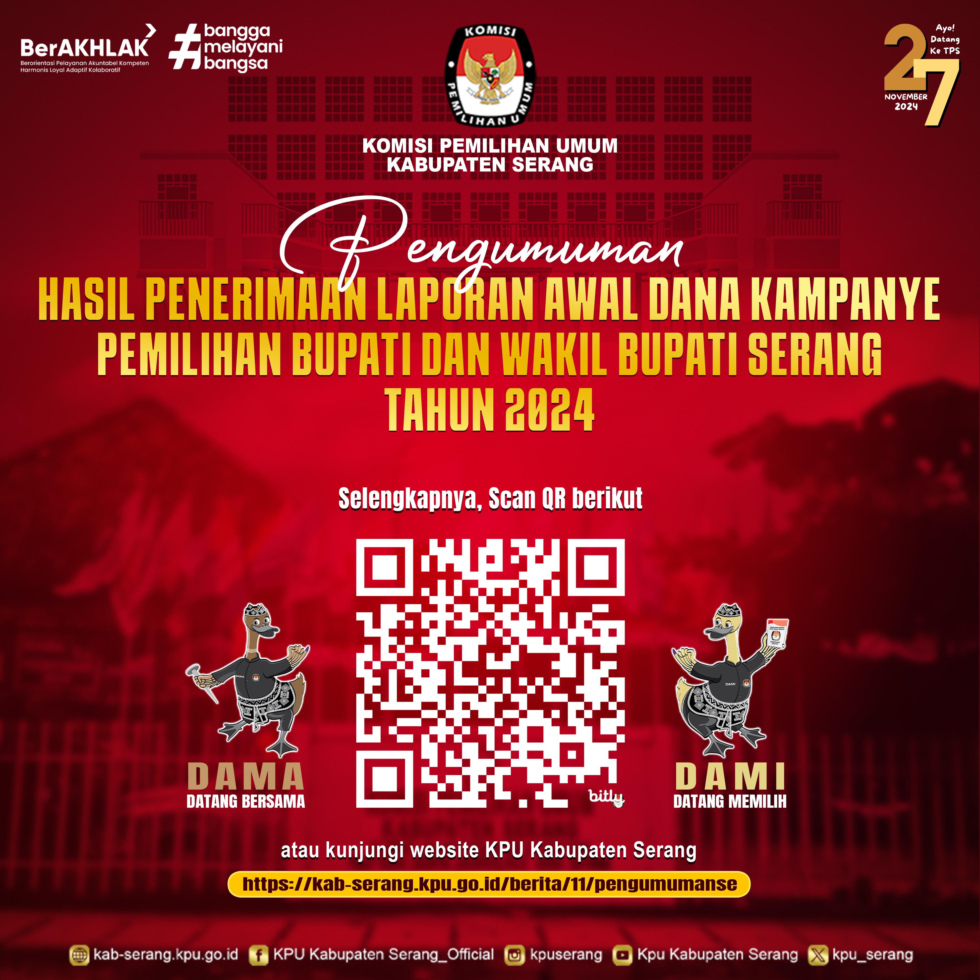 PENGUMUMAN NOMOR 437 HASIL PENERIMAAN LAPORAN AWAL DANA KAMPANYE PEMILIHAN BUPATI DAN WAKIL BUPATI SERANG TAHUN 2024