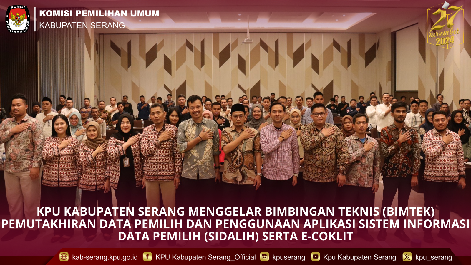 Turut hadir, Jajaran sekretariat KPU Kabupaten Serang dan Ketua PPK, Anggota PPK Divisi Data Informasi dan Divisi SDM Se Kabupaten Serang sebagai peserta.