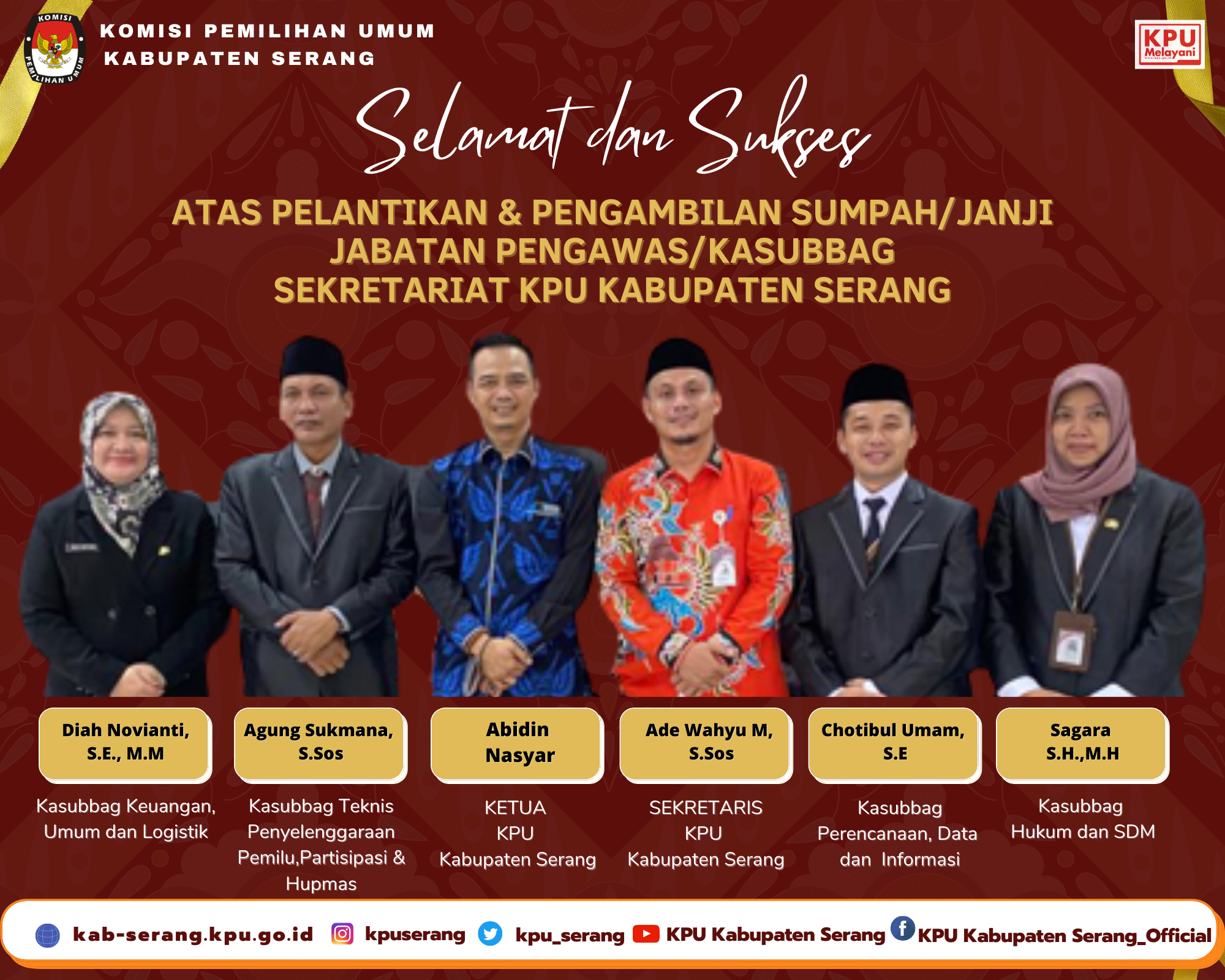 Selamat dan Sukses atas Pelantikan dan Pengambilan Sumpah Kasubbag di Lingkungan Sekretariat KPU Kabupaten Serang