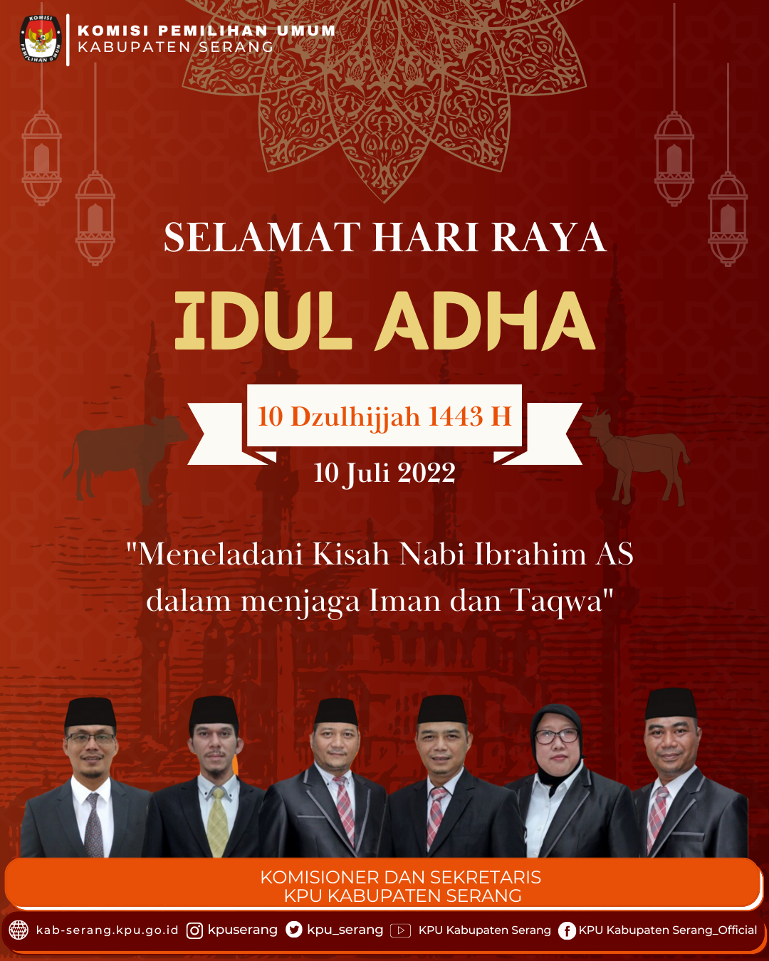 Segenap Keluarga Besar KPU Kabupaten Serang mengucapkan Selamat Hari Raya Idul Adha 1443 H/ 2022 M