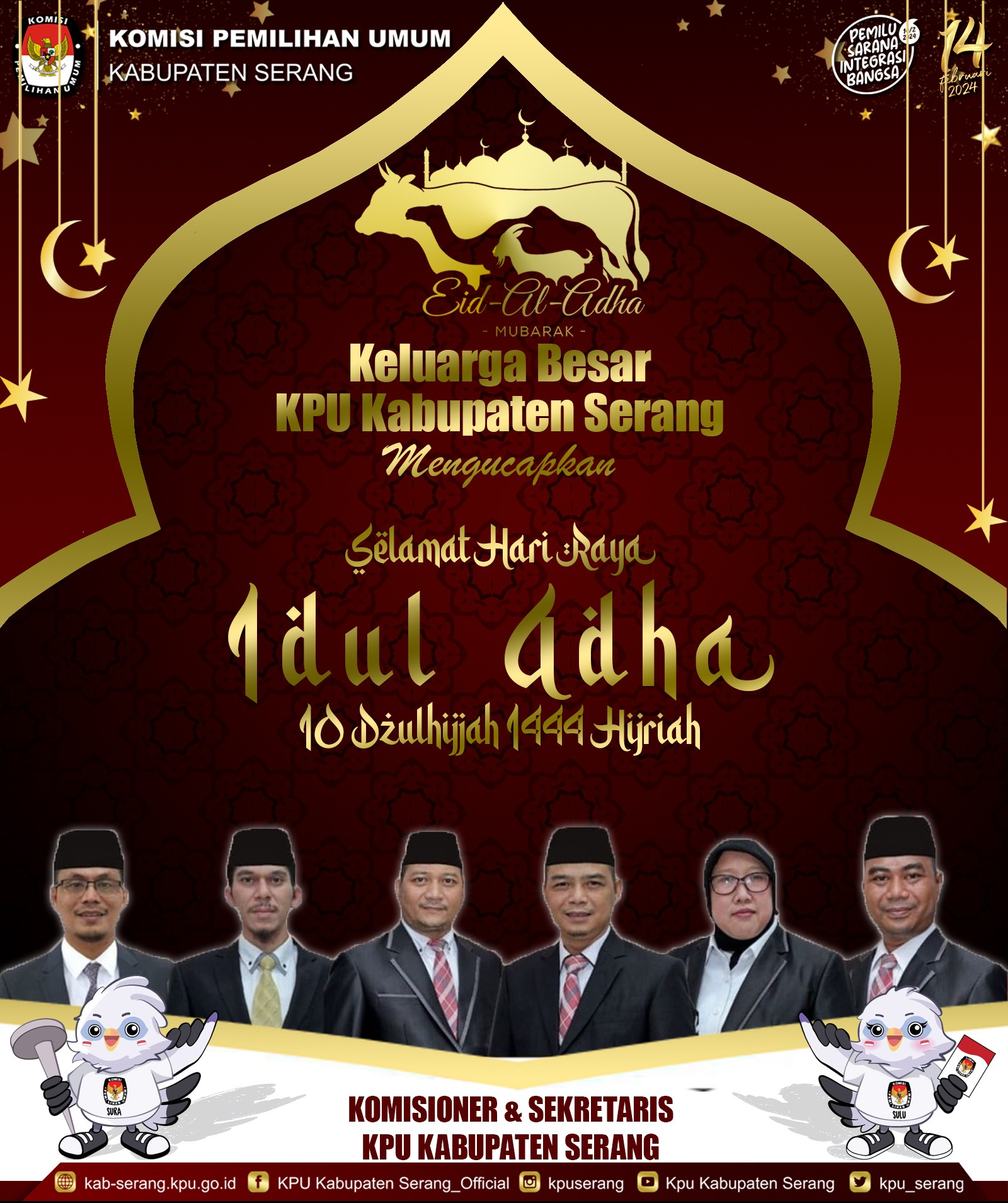 #TemanPemilih, segenap jajaran KPU Kabupaten Serang mengucapkan Selamat Hari Raya Idul Adha 10 Dzulhijjah 1444 Hijriah.