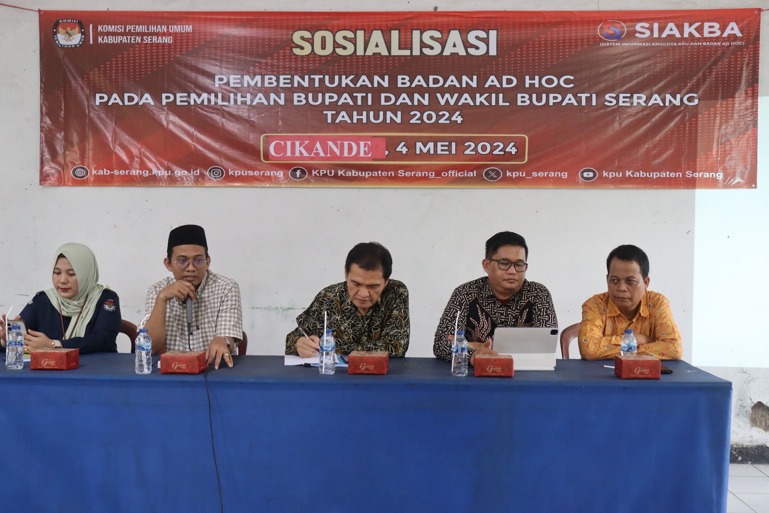 Kegiatan yang diselenggarakan di Aula Utama Kecamatan Cikande ini dipimpin langsung Ketua KPU Kabupaten Serang Muhamad Nasehudin dan Ketua divisi Perencanaan Data dan Informas KPU Kabupaten Septia Abdi Gama. Sosialisi tersebut juga melibatkan berbagai pihak yakni, kepala Kesbangpol Kabupaten Serang H. Epi Priatna selaku narasumber, Seluruh camat se-Dapil 2 (dua), kepala Desa atau beberapa Perwakilan Kepala Desa Se-Dapil 2 (dua), serta perwakilan masyarakat dapil dua yang meliputi, Kecamatan Kibin, Kecamatan Kragilan, Kecamatan Cikande, Kecamatan Jawilan dan Kecamatan Kopo.