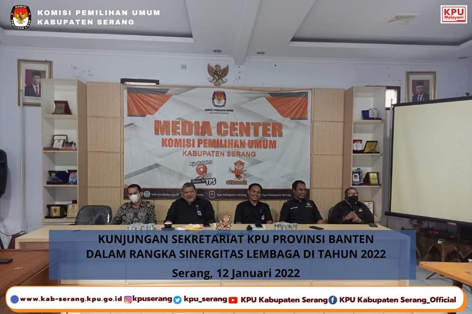 Serang (12/1) - KPU Kabupaten Serang menerima kunjungan dari Sekretariat KPU Provinsi Banten pada Rabu (12/1). Hadir Bapak Ferry Syahminan selaku Sekretaris KPU Provinsi Banten bersama para Kepala Bagian. Tujuan dari kunjungan ini adalah sinergi dengan lembaga KPU Kab/Kota di Provinsi Banten. Dalam kunjungan ini membahas apa saja kendala dan masalah yang dihadapi oleh KPU Kabupaten Serang selama ini, bagaimana data-data pegawai yang ada hingga mengenai penerimaan PPNPN pada tahun 2022 ini.