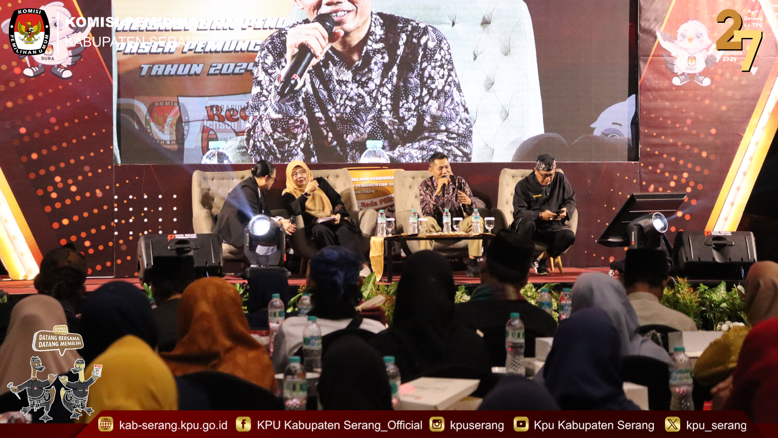 Hadir Pada Kegiatan Tersebut sebagai narasumber Anggota KPU Kabupaten Serang Ichsan Mahfuz , Dosen UIN SMH Banten Iin Sumiat dan Sekretari Dinas Kepemudaan, Olah raga dan Pariwisata Beni Iskandar.