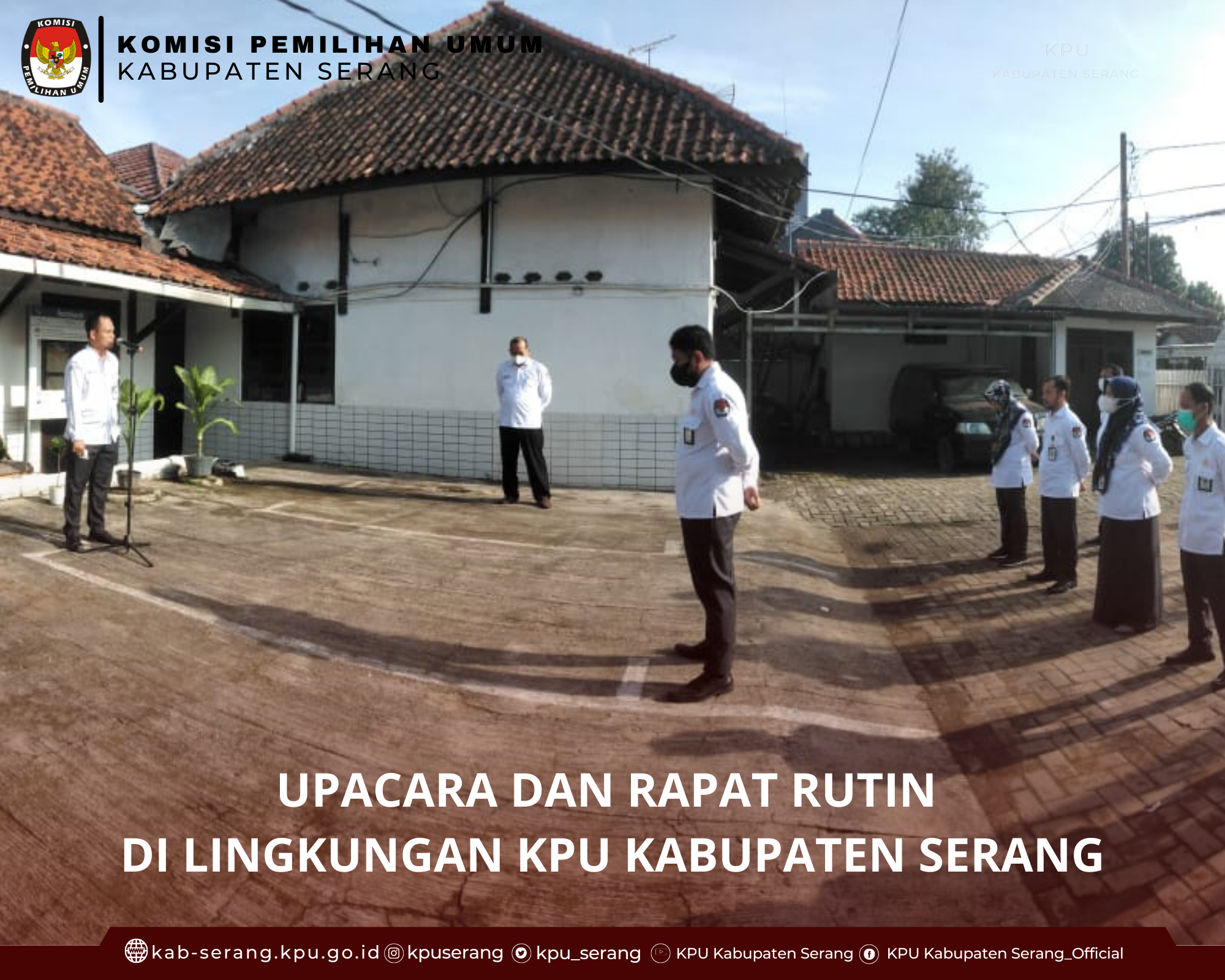 Serang (4/7) - KPU Kabupaten Serang melaksanakan Upacara dan Rapat Mingguan pada Senin (4/7) pukul 08.00 WIB. Hadir sebagai Pembina Upacara Sekretaris KPU Kabupaten Serang, Bapak Ade Wahyu Margono. Dalam amanatnya Bapak Ade menyampaikan untuk mempersiapkan segala hal dalam tahapan Pemilu tahun 2024 termasuk sosialisasi di media sosial dan website, terus menjaga kekompakan antara para pegawai dalam segala hal dan saling membantu dalam pelaksanaan tugas.Setelah upacara dilanjutkan dengan Rapat mingguan di aula KPU Kabupaten Serang yang membahas mengenai evaluasi dan rancangan kerja selama seminggu kedepan.Upacara dan Rapat rutin merupakan salah satu bentuk pengabdian dan integritas yang dilakukan oleh KPU Kabupaten Serang.