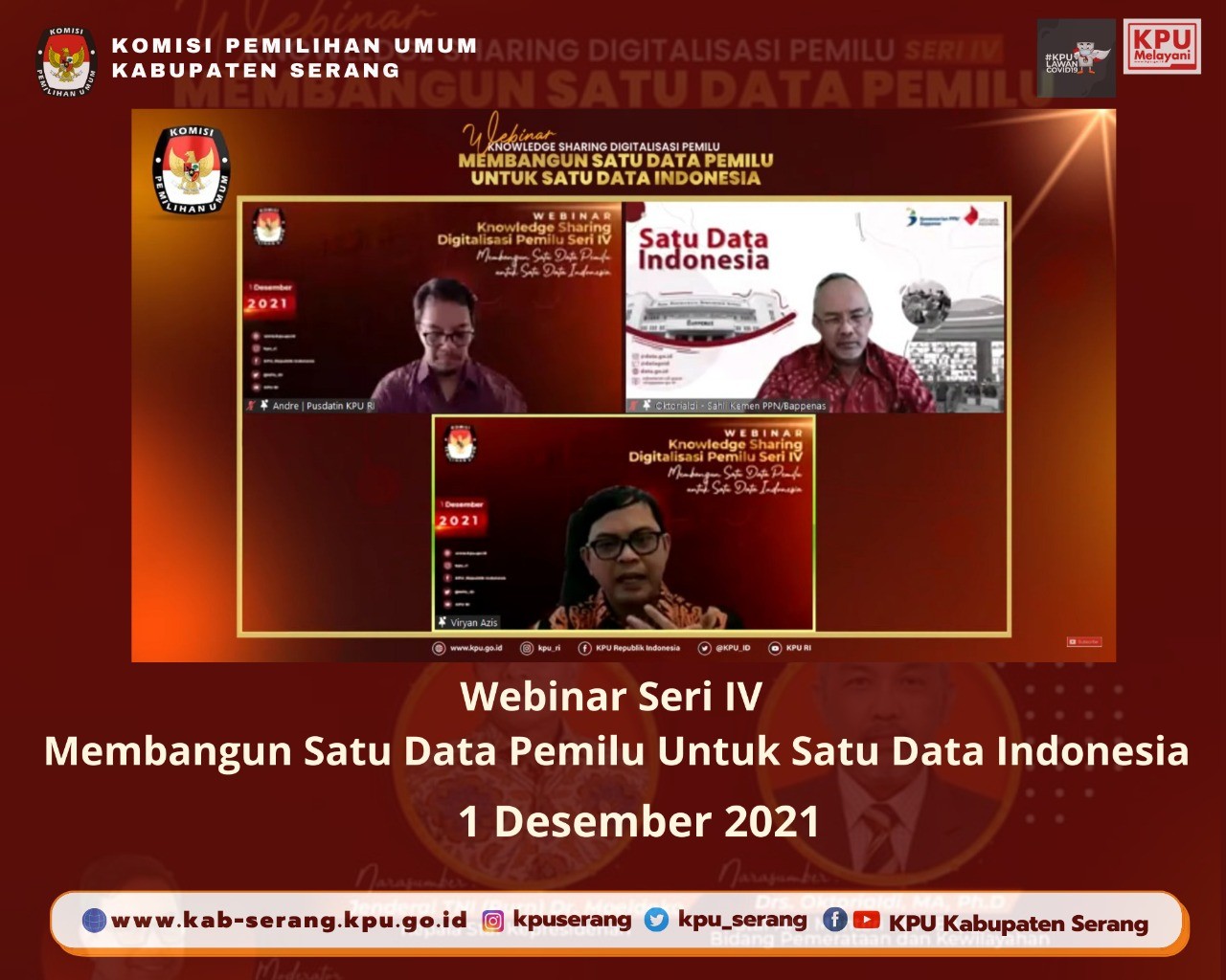 Serang (1/12) - KPU Kabupaten Serang mengikuti kegiatan Webinar Knowledge Sharing Digitalisasi Pemilu Seri IV dengan tema "Membangun Satu Data Pemilu untuk Satu Data Indonesia" pada Rabu (1/12).